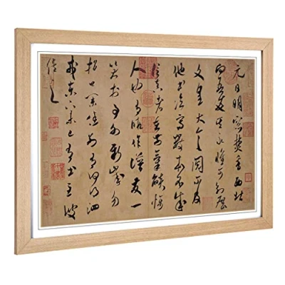 Big Box Art Framed Print of Mi Fu Script Japanese Oriental Design Wall Picture Home Decor for Kitchen, Living, Dining Room, Bedroom, Hallway, Office, Oak, A2 / 24.5x18 Inch 62x45cm