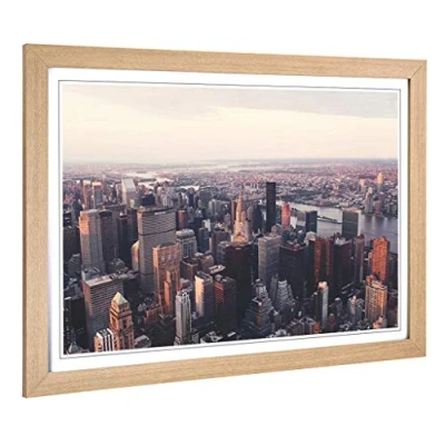 Big Box Art Framed Print of New York City Skyline USA (10) Design Wall Picture Home Decor for Kitchen, Living, Dining Room, Bedroom, Hallway, Office, Oak, A2 / 24.5x18 Inch 62x45cm