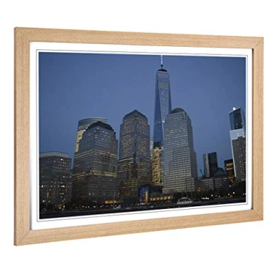 Big Box Art Framed Print of New York City Skyline USA (13) Design Wall Picture Home Decor for Kitchen, Living, Dining Room, Bedroom, Hallway, Office, Oak, A2 / 24.5x18 Inch 62x45cm