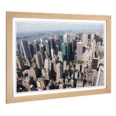 Big Box Art Framed Print of New York City Skyline USA (15) Design Wall Picture Home Decor for Kitchen, Living, Dining Room, Bedroom, Hallway, Office, Oak, A2 / 24.5x18 Inch 62x45cm