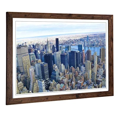 Big Box Art Framed Print of New York City Skyline USA (21) Design Wall Picture Home Decor for Kitchen, Living, Dining Room, Bedroom, Hallway, Office, Walnut, A2 / 24.5x18 Inch 62x45cm