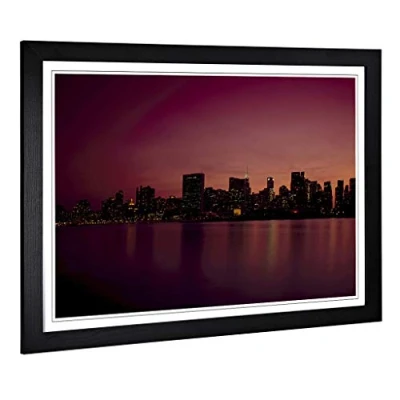 Big Box Art Framed Print of New York City Skyline USA (23) Design Wall Picture Home Decor for Kitchen, Living, Dining Room, Bedroom, Hallway, Office, Black, A2 / 24.5x18 Inch 62x45cm