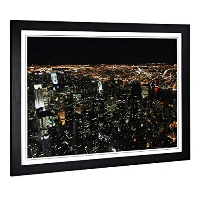Big Box Art Framed Print of New York City Skyline USA (6) Design Wall Picture Home Decor for Kitchen, Living, Dining Room, Bedroom, Hallway, Office, Black, A2 / 24.5x18 Inch 62x45cm