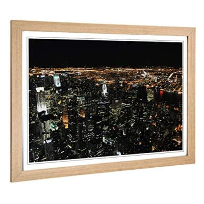 Big Box Art Framed Print of New York City Skyline USA (6) Design Wall Picture Home Decor for Kitchen, Living, Dining Room, Bedroom, Hallway, Office, Oak, A2 / 24.5x18 Inch 62x45cm