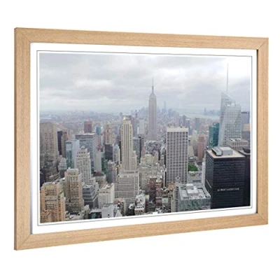 Big Box Art Framed Print of New York City Skyline USA (8) Design Wall Picture Home Decor for Kitchen, Living, Dining Room, Bedroom, Hallway, Office, Oak, A2 / 24.5x18 Inch 62x45cm