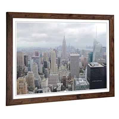 Big Box Art Framed Print of New York City Skyline USA (8) Design Wall Picture Home Decor for Kitchen, Living, Dining Room, Bedroom, Hallway, Office, Walnut, A2 / 24.5x18 Inch 62x45cm