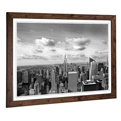 Big Box Art Framed Print of New York City Skyline USA (9) Design Wall Picture Home Decor for Kitchen, Living, Dining Room, Bedroom, Hallway, Office, Walnut, A2 / 24.5x18 Inch 62x45cm