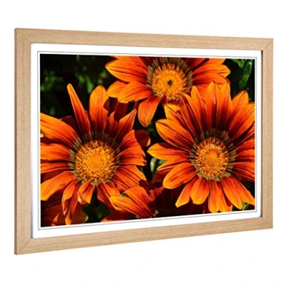 Big Box Art Framed Print of Orange Flower Design Wall Picture Home Decor for Kitchen, Living, Dining Room, Lounge, Bedroom, Hallway, Office, Oak, A2 / 24.5x18 Inch 62x45cm