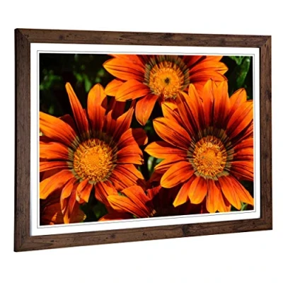 Big Box Art Framed Print of Orange Flower Design Wall Picture Home Decor for Kitchen, Living, Dining Room, Lounge, Bedroom, Hallway, Office, Walnut, A2 / 24.5x18 Inch 62x45cm