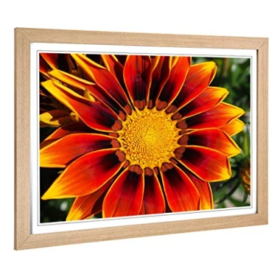 Big Box Art Framed Print of Orange Flower Gazanie Design Wall Picture Home Decor for Kitchen, Living, Dining Room, Lounge, Bedroom, Hallway, Office, Oak, A2 / 24.5x18 Inch 62x45cm