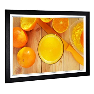 Big Box Art Framed Print of Orange Juice Design Wall Picture Home Decor for Kitchen, Living, Dining Room, Lounge, Bedroom, Hallway, Office, Black, A2 / 24.5x18 Inch 62x45cm