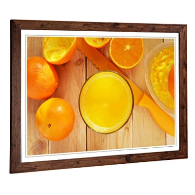Big Box Art Framed Print of Orange Juice Design Wall Picture Home Decor for Kitchen, Living, Dining Room, Lounge, Bedroom, Hallway, Office, Walnut, A2 / 24.5x18 Inch 62x45cm