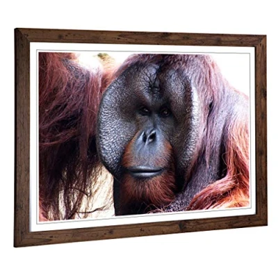Big Box Art Framed Print of Orangutan Monkey (2) Design Wall Picture Home Decor for Kitchen, Living, Dining Room, Lounge, Bedroom, Hallway, Office, Walnut, A2 / 24.5x18 Inch 62x45cm