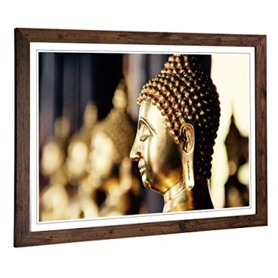 Big Box Art Framed Print of Oriental Buddha (11) Design Wall Picture Home Decor for Kitchen, Living, Dining Room, Lounge, Bedroom, Hallway, Office, Walnut, A2 / 24.5x18 Inch 62x45cm