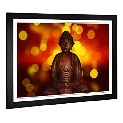 Big Box Art Framed Print of Oriental Buddha (2) Design Wall Picture Home Decor for Kitchen, Living, Dining Room, Lounge, Bedroom, Hallway, Office, Black, A2 / 24.5x18 Inch 62x45cm
