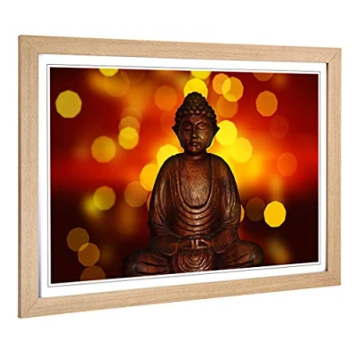 Big Box Art Framed Print of Oriental Buddha (2) Design Wall Picture Home Decor for Kitchen, Living, Dining Room, Lounge, Bedroom, Hallway, Office, Oak, A2 / 24.5x18 Inch 62x45cm