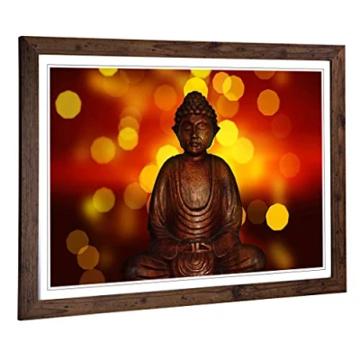 Big Box Art Framed Print of Oriental Buddha (2) Design Wall Picture Home Decor for Kitchen, Living, Dining Room, Lounge, Bedroom, Hallway, Office, Walnut, A2 / 24.5x18 Inch 62x45cm