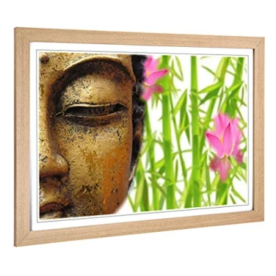 Big Box Art Framed Print of Oriental Buddha (3) Design Wall Picture Home Decor for Kitchen, Living, Dining Room, Lounge, Bedroom, Hallway, Office, Oak, A2 / 24.5x18 Inch 62x45cm