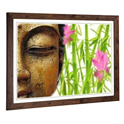 Big Box Art Framed Print of Oriental Buddha (3) Design Wall Picture Home Decor for Kitchen, Living, Dining Room, Lounge, Bedroom, Hallway, Office, Walnut, A2 / 24.5x18 Inch 62x45cm
