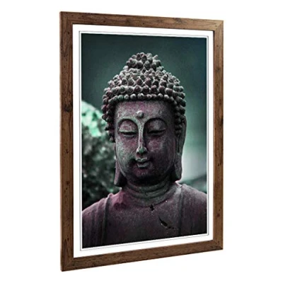 Big Box Art Framed Print of Oriental Buddha (4) Design Wall Picture Home Decor for Kitchen, Living, Dining Room, Lounge, Bedroom, Hallway, Office, Walnut, A2 / 24.5x18 Inch 62x45cm