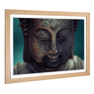 Big Box Art Framed Print of Oriental Buddha (5) Design Wall Picture Home Decor for Kitchen, Living, Dining Room, Lounge, Bedroom, Hallway, Office, Oak, A2 / 24.5x18 Inch 62x45cm