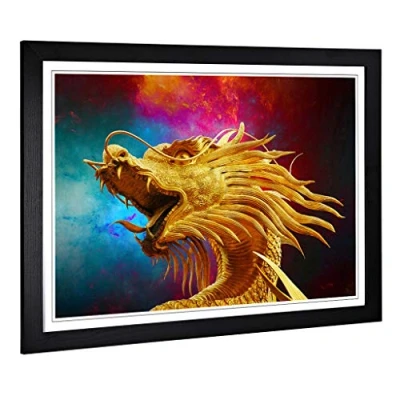 Big Box Art Framed Print of Oriental Dragon Design Wall Picture Home Decor for Kitchen, Living, Dining Room, Lounge, Bedroom, Hallway, Office, Black, A2 / 24.5x18 Inch 62x45cm