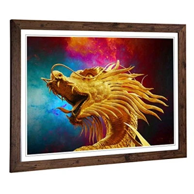 Big Box Art Framed Print of Oriental Dragon Design Wall Picture Home Decor for Kitchen, Living, Dining Room, Lounge, Bedroom, Hallway, Office, Walnut, A2 / 24.5x18 Inch 62x45cm