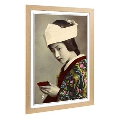 Big Box Art Framed Print of Oriental Japanese Geisha Girl (5) Design Wall Picture Home Decor for Kitchen, Living Room, Bedroom, Hallway, Oak, A2 / 24.5x18 Inch 62x45cm