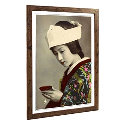 Big Box Art Framed Print of Oriental Japanese Geisha Girl (5) Design Wall Picture Home Decor for Kitchen, Living Room, Bedroom, Hallway, Walnut, A2 / 24.5x18 Inch 62x45cm
