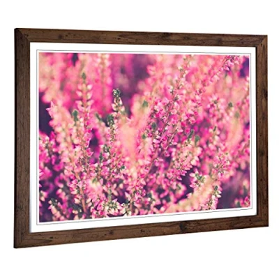 Big Box Art Framed Print of Pink Flower Heathers Design Wall Picture Home Decor for Kitchen, Living, Dining Room, Lounge, Bedroom, Hallway, Office, Walnut, A2 / 24.5x18 Inch 62x45cm