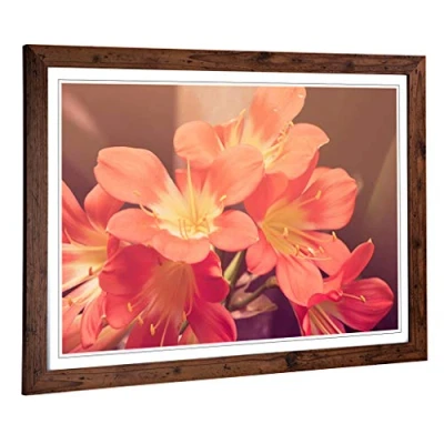 Big Box Art Framed Print of Pink Flowers Design Wall Picture Home Decor for Kitchen, Living, Dining Room, Lounge, Bedroom, Hallway, Office, Walnut, A2 / 24.5x18 Inch 62x45cm