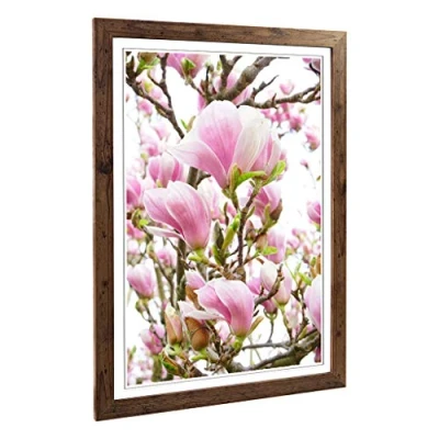 Big Box Art Framed Print of Pink Magnolia Blossom Design Wall Picture Home Decor for Kitchen, Living, Dining Room, Lounge, Bedroom, Hallway, Office, Walnut, A2 / 24.5x18 Inch 62x45cm