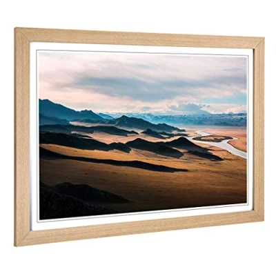 Big Box Art Framed Print of Prairie Landscape Mountains Design Wall Picture Home Decor for Kitchen, Living, Dining Room, Bedroom, Hallway, Office, Oak, A2 / 24.5x18 Inch 62x45cm