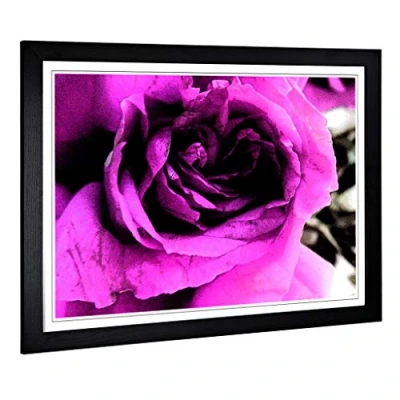 Big Box Art Framed Print of Purple Rose Flower Design Wall Picture Home Decor for Kitchen, Living, Dining Room, Lounge, Bedroom, Hallway, Office, Black, A2 / 24.5x18 Inch 62x45cm