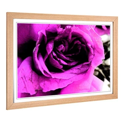 Big Box Art Framed Print of Purple Rose Flower Design Wall Picture Home Decor for Kitchen, Living, Dining Room, Lounge, Bedroom, Hallway, Office, Oak, A2 / 24.5x18 Inch 62x45cm