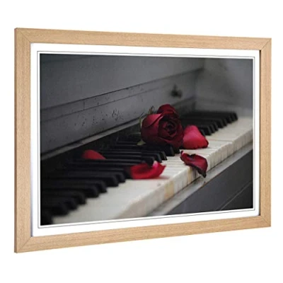 Big Box Art Framed Print of Red Rose Flower Piano Design Wall Picture Home Decor for Kitchen, Living, Dining Room, Lounge, Bedroom, Hallway, Office, Oak, A2 / 24.5x18 Inch 62x45cm