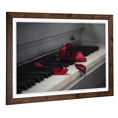 Big Box Art Framed Print of Red Rose Flower Piano Design Wall Picture Home Decor for Kitchen, Living, Dining Room, Lounge, Bedroom, Hallway, Office, Walnut, A2 / 24.5x18 Inch 62x45cm