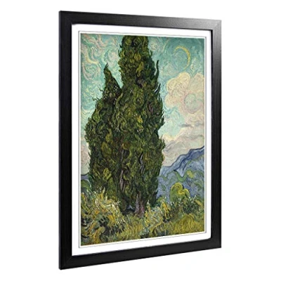 Big Box Art Framed Print of Vincent Van Gogh Cypresses Design Wall Picture Home Decor for Kitchen, Living, Dining Room, Bedroom, Hallway, Office, Black, A2 / 24.5x18 Inch 62x45cm