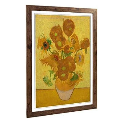 Big Box Art Framed Print of Vincent Van Gogh Fifteen Sunflowers Design Wall Picture Home Decor for Kitchen, Living Room, Bedroom, Hallway, Walnut, A2 / 24.5x18 Inch 62x45cm