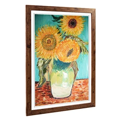 Big Box Art Framed Print of Vincent Van Gogh Sunflowers (2) Design Wall Picture Home Decor for Kitchen, Living Room, Bedroom, Hallway, Walnut, A2 / 24.5x18 Inch 62x45cm