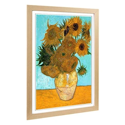 Big Box Art Framed Print of Vincent Van Gogh Twelve Sunflowers Design Wall Picture Home Decor for Kitchen, Living Room, Bedroom, Hallway, Oak, A2 / 24.5x18 Inch 62x45cm