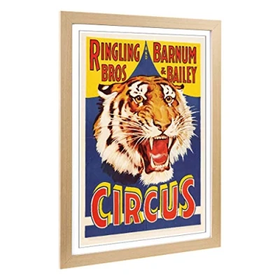 Big Box Art Framed Print of Vintage Circus Design Wall Picture Home Decor for Kitchen, Living, Dining Room, Lounge, Bedroom, Hallway, Office, Oak, A2 / 24.5x18 Inch 62x45cm