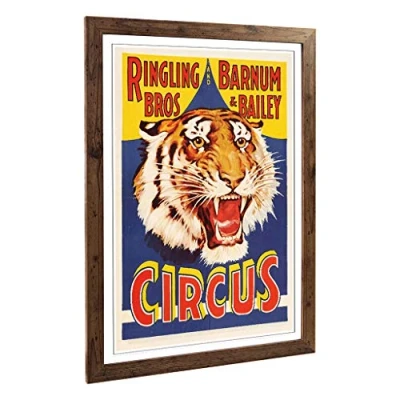 Big Box Art Framed Print of Vintage Circus Design Wall Picture Home Decor for Kitchen, Living, Dining Room, Lounge, Bedroom, Hallway, Office, Walnut, A2 / 24.5x18 Inch 62x45cm