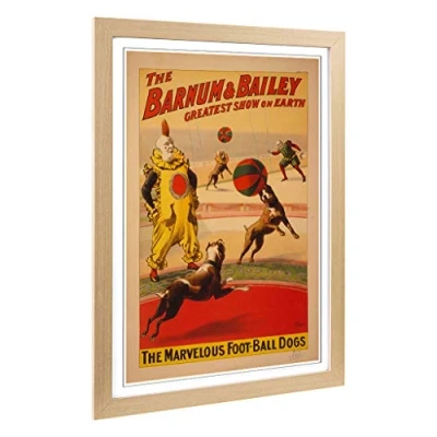 Big Box Art Framed Print of Vintage Circus Poster (5) Design Wall Picture Home Decor for Kitchen, Living, Dining Room, Bedroom, Hallway, Office, Oak, A2 / 24.5x18 Inch 62x45cm