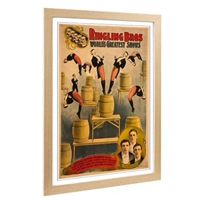 Big Box Art Framed Print of Vintage Circus Poster (6) Design Wall Picture Home Decor for Kitchen, Living, Dining Room, Bedroom, Hallway, Office, Oak, A2 / 24.5x18 Inch 62x45cm