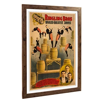 Big Box Art Framed Print of Vintage Circus Poster (6) Design Wall Picture Home Decor for Kitchen, Living, Dining Room, Bedroom, Hallway, Office, Walnut, A2 / 24.5x18 Inch 62x45cm