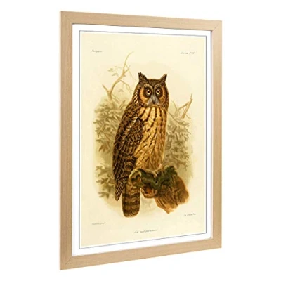 Big Box Art Framed Print of Vintage J.G. Keulemans Madagascan Owl Design Wall Picture Home Decor for Kitchen, Living Room, Bedroom, Hallway, Oak, A2 / 24.5x18 Inch 62x45cm