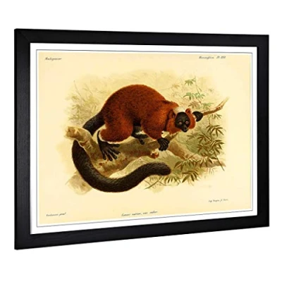 Big Box Art Framed Print of Vintage J.G. Keulemans Red Ruffed Lemur 1 Design Wall Picture Home Decor for Kitchen, Living Room, Bedroom, Hallway, Black, A2 / 24.5x18 Inch 62x45cm