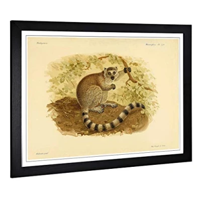 Big Box Art Framed Print of Vintage J.G. Keulemans Ring Tailed Lemur Design Wall Picture Home Decor for Kitchen, Living Room, Bedroom, Hallway, Black, A2 / 24.5x18 Inch 62x45cm