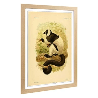 Big Box Art Framed Print of Vintage J.G. Keulemans Ruffed Lemur Design Wall Picture Home Decor for Kitchen, Living Room, Bedroom, Hallway, Oak, A2 / 24.5x18 Inch 62x45cm